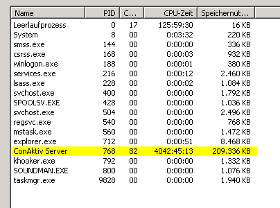 Nachgereicht: Bevor ich den ConAktiv Rechner zu Wartungsarbeiten heruntergefahren habe konnte ich mir einen Screenshot des Task-Managers nicht verkneifen. Ganz ordentliche Stundenanzahl, wie ich meine!
