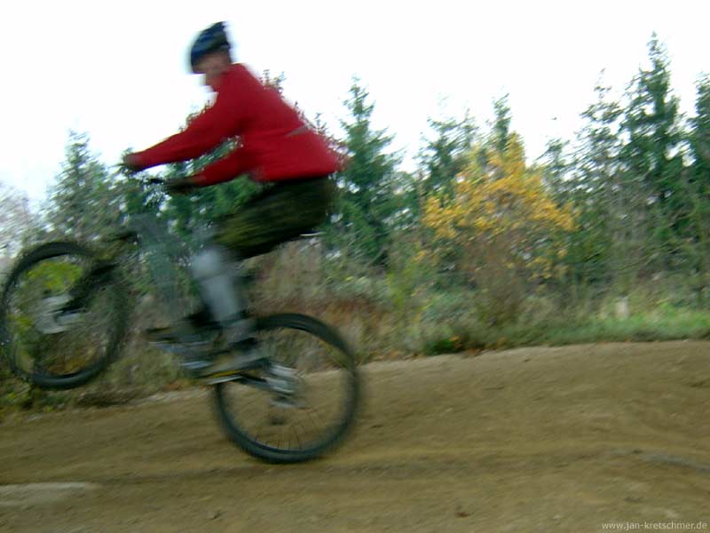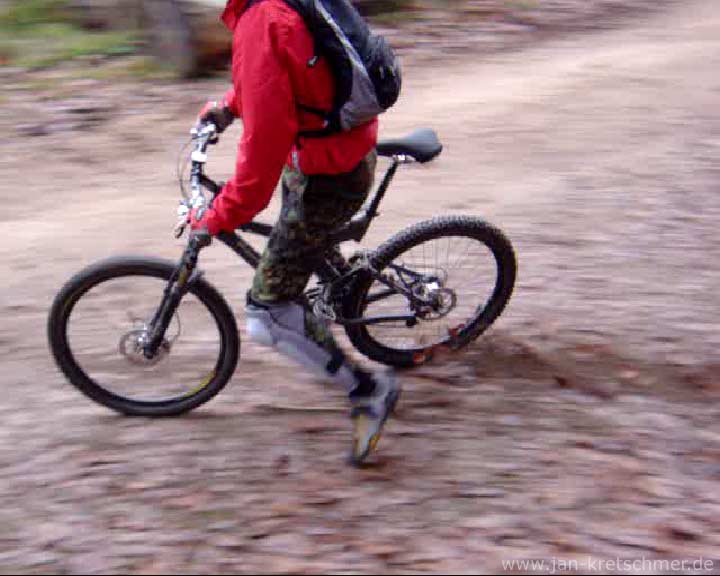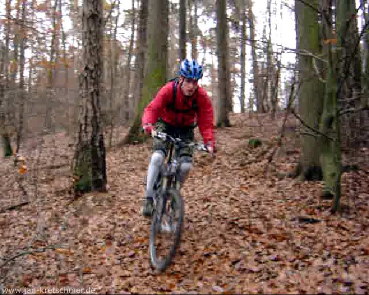 war heute das Vorankommen mit dem Fahrrad abseits der Straße. Eine drei Zentimeter dicke feuchte Blätterschicht verdeckte die moosbewachsenen Wurzeln. Schon in Schrittgeschwindigkeit war es nicht einfach, das Rad unter Kontrolle zu halten. Dennoch hat mein Bruder einige Eindrücke festgehalten: